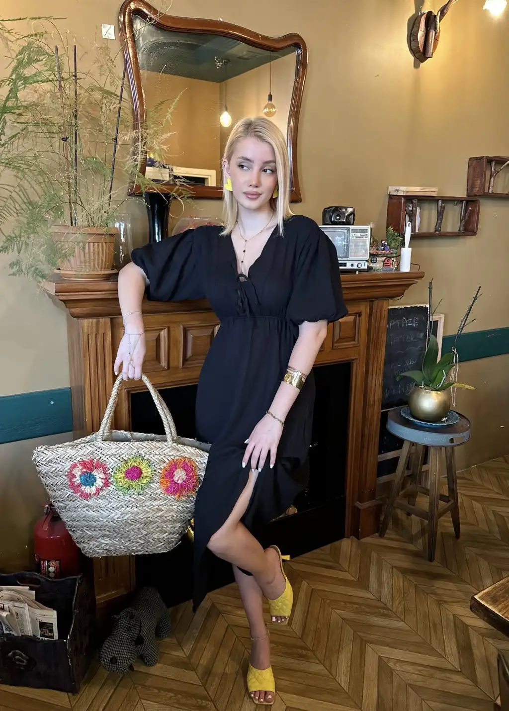 Vayla Siyah Müslin Kumaş Bağlama Detaylı Elbise
