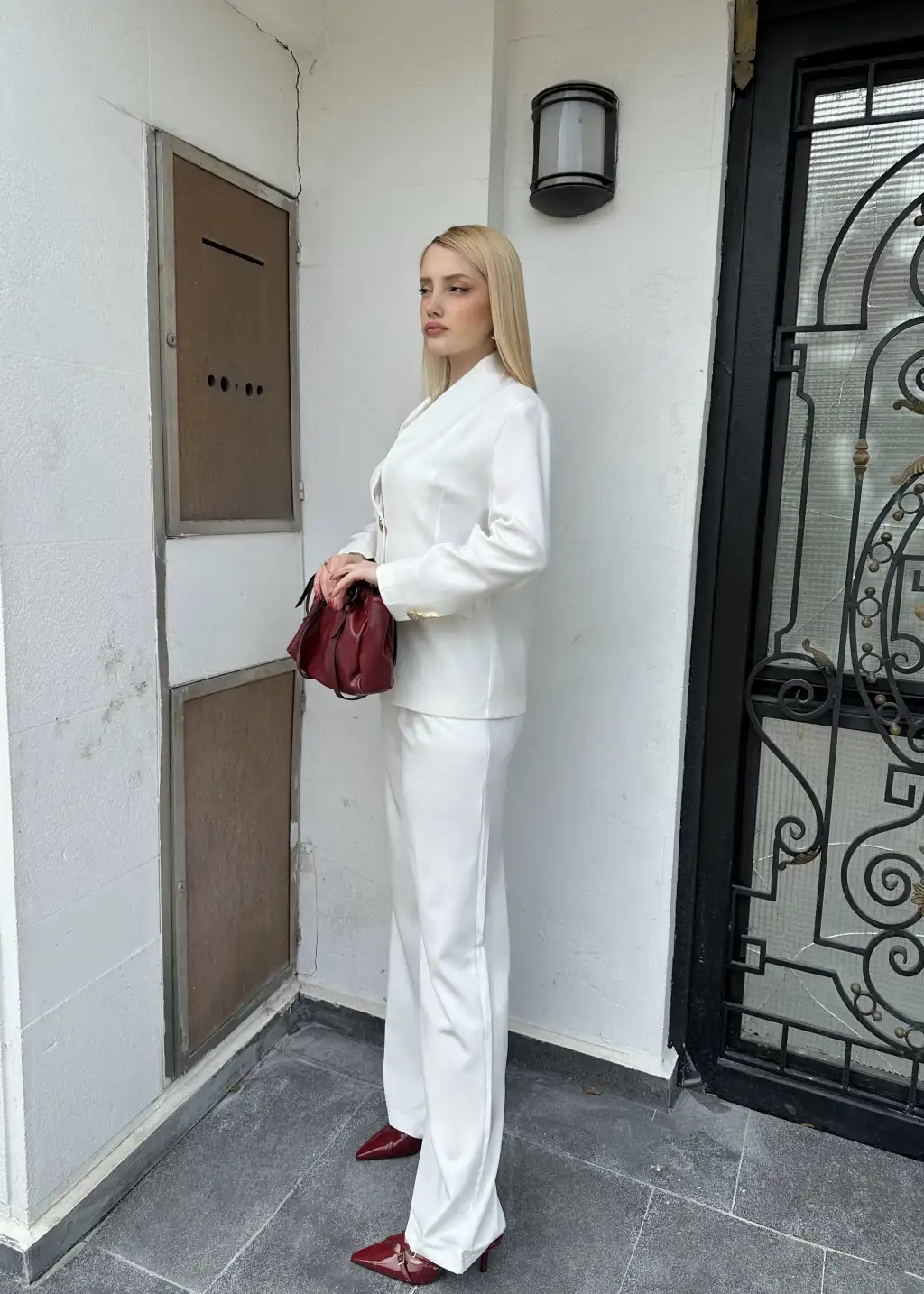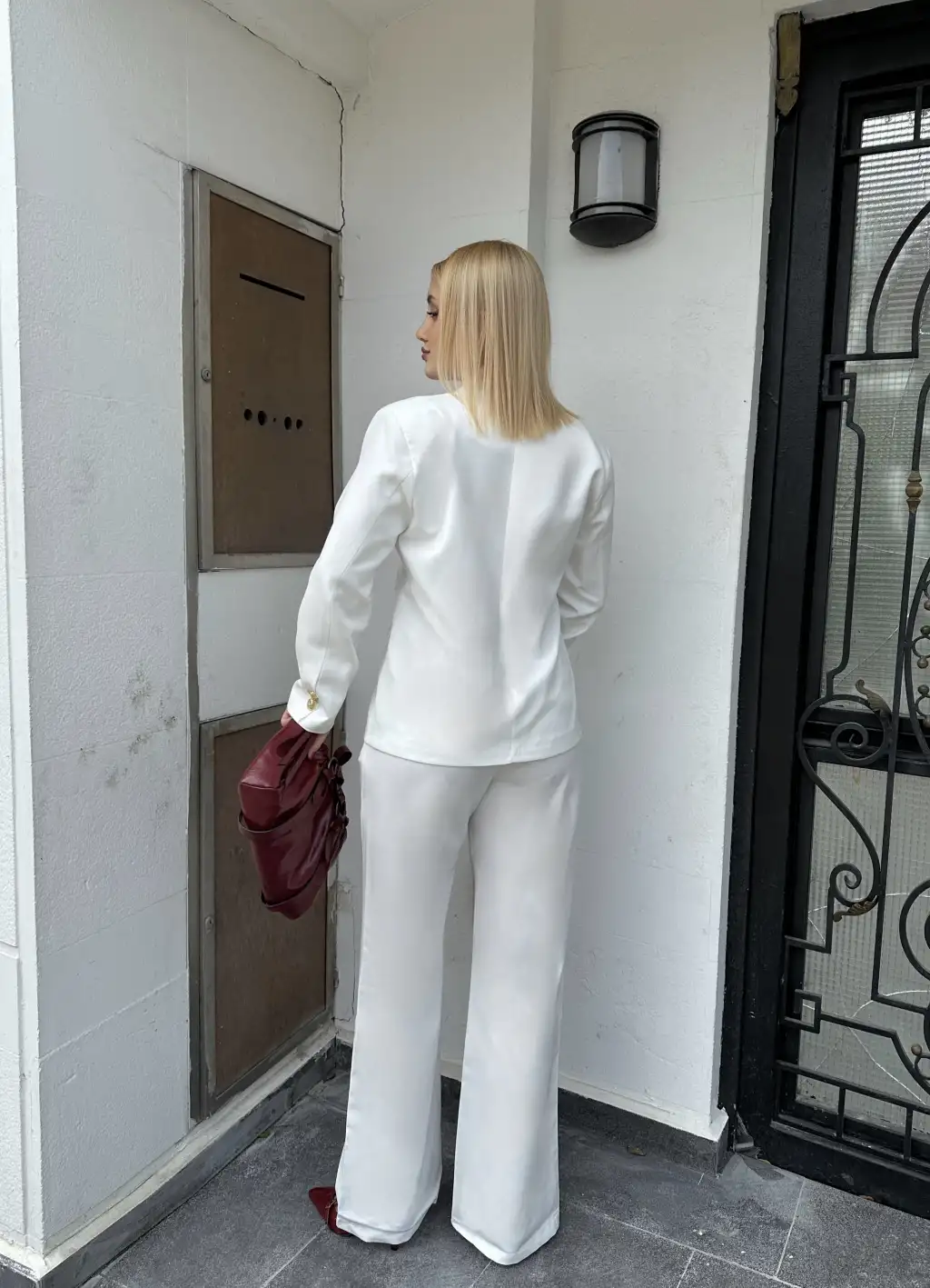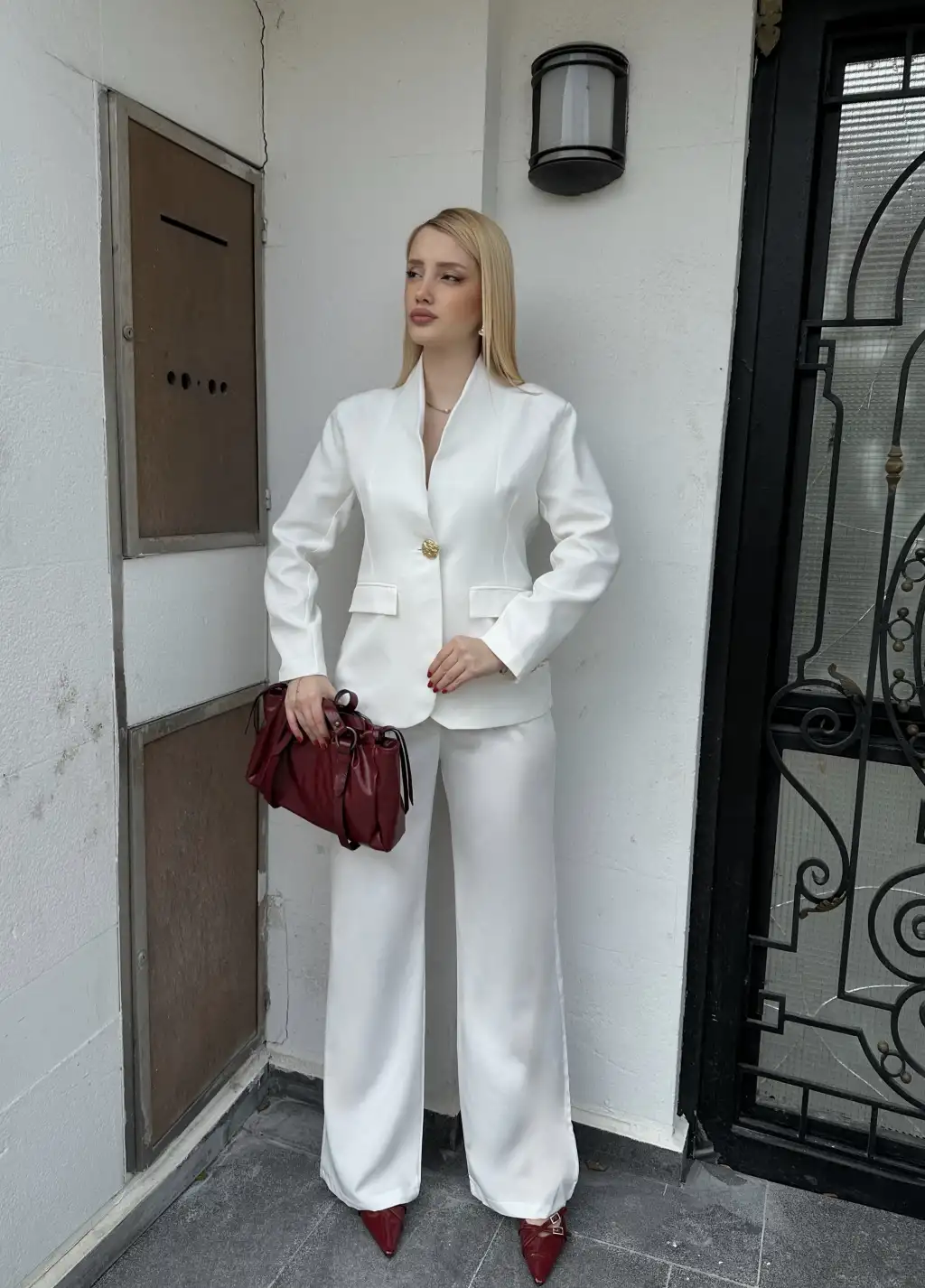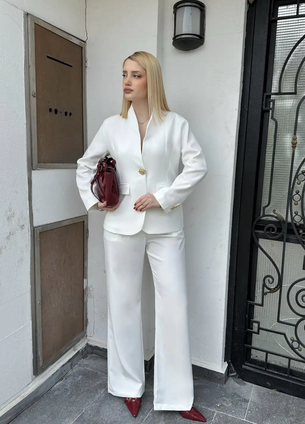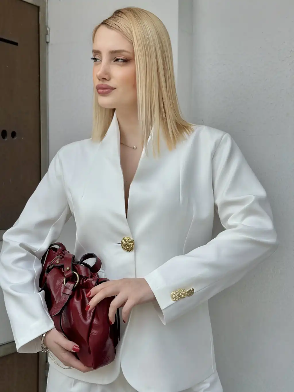Velvet Beyaz Gold Büyük Tek Düğmeli İç Astarlı Beyaz Blazer Ceket