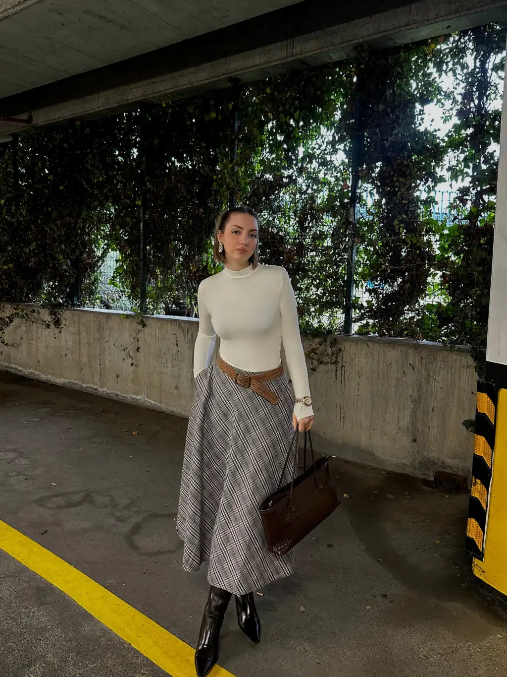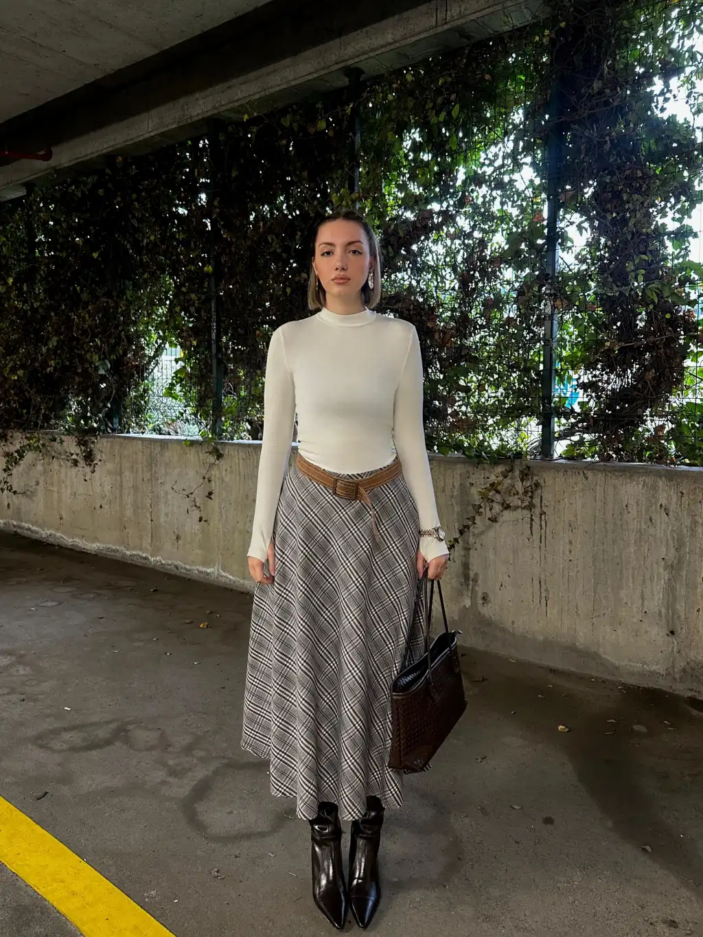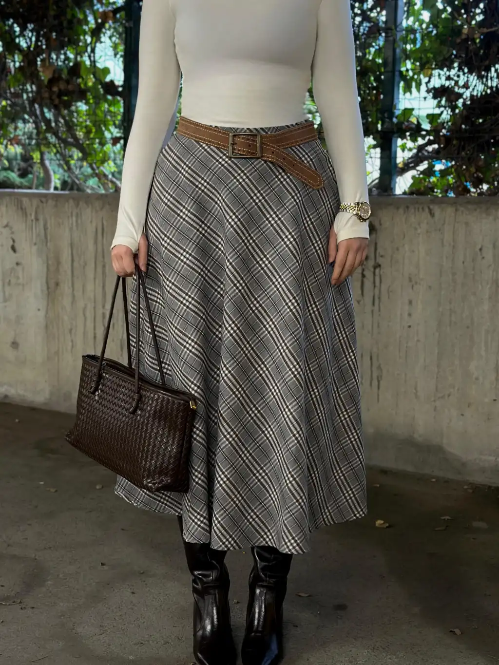 Volanlı Cepli Gri Ekose Oduncu Etek