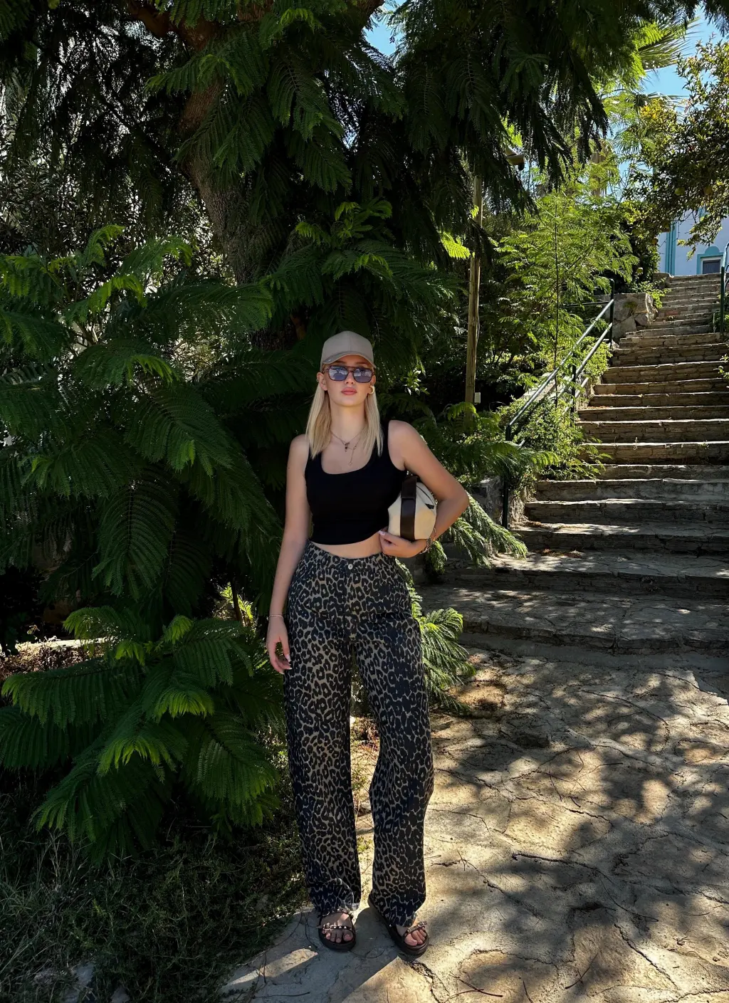 Witzel Balon Kesim Çift Cepli Yüksek Bel Leopar Pantolon