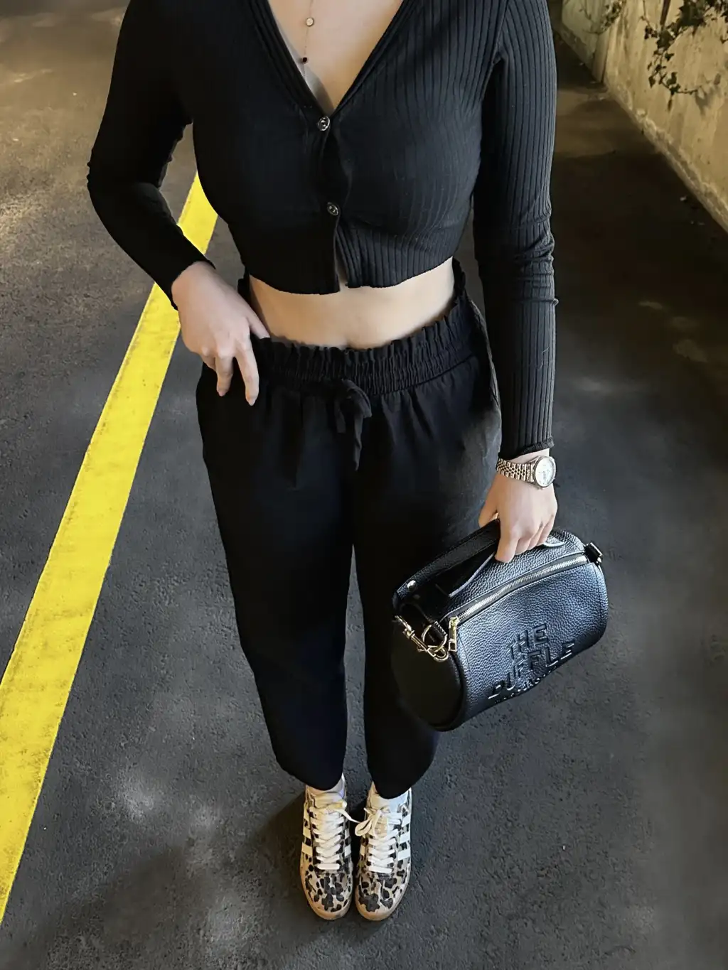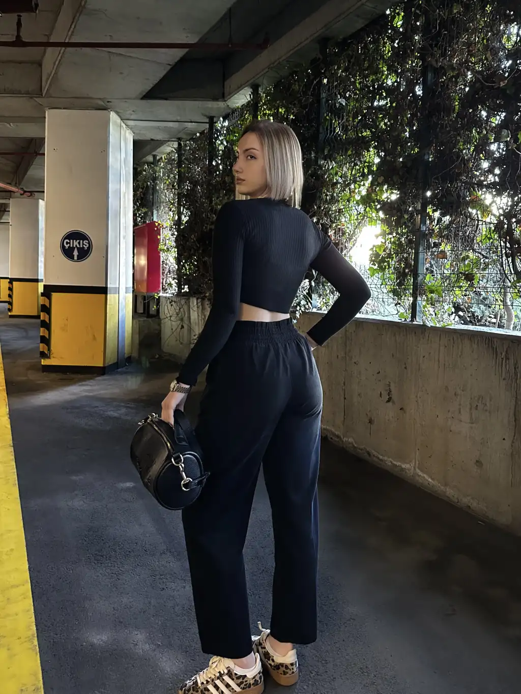 Yüksek Bel Gabardin Cepli Siyah Pantolon
