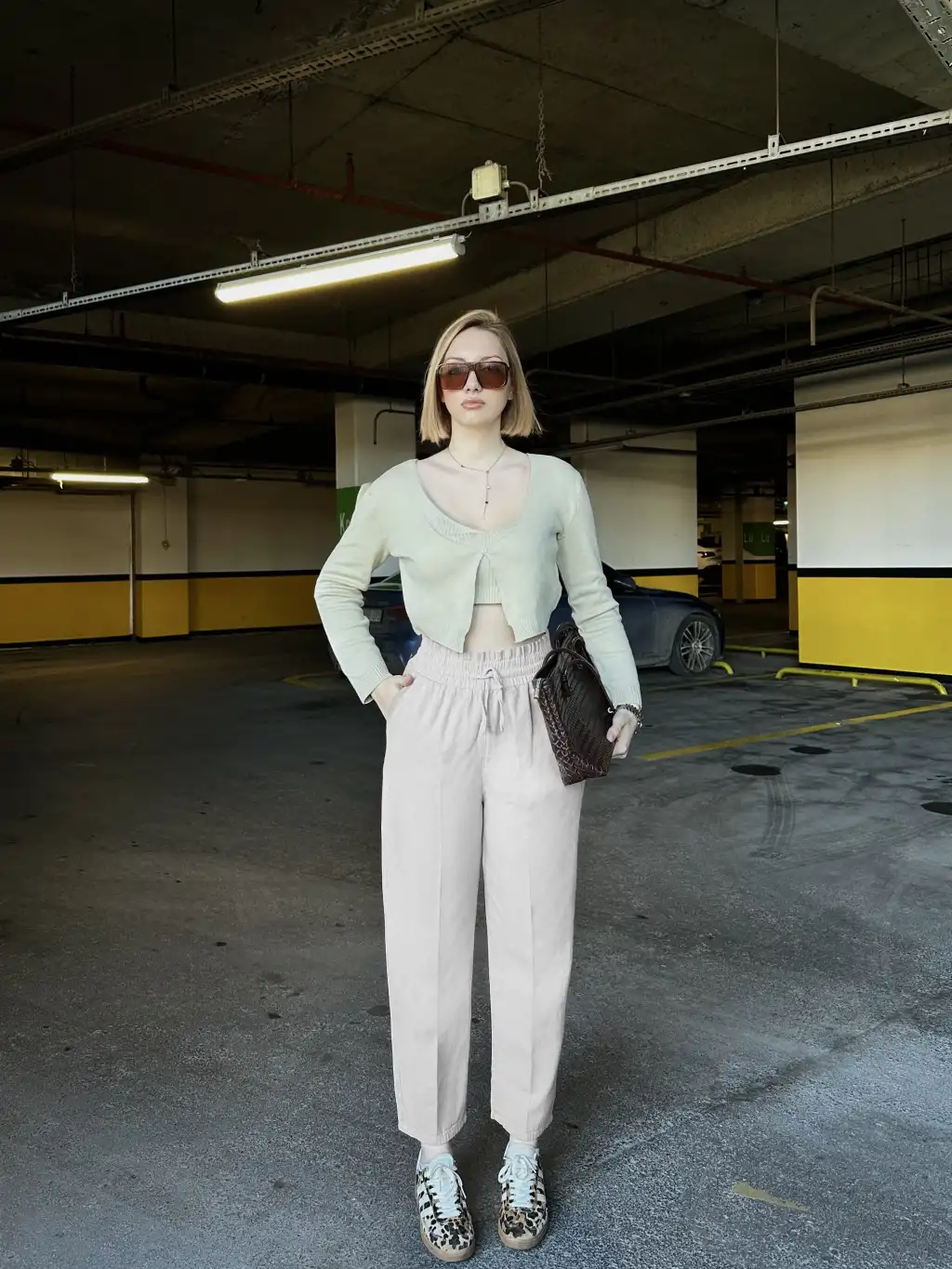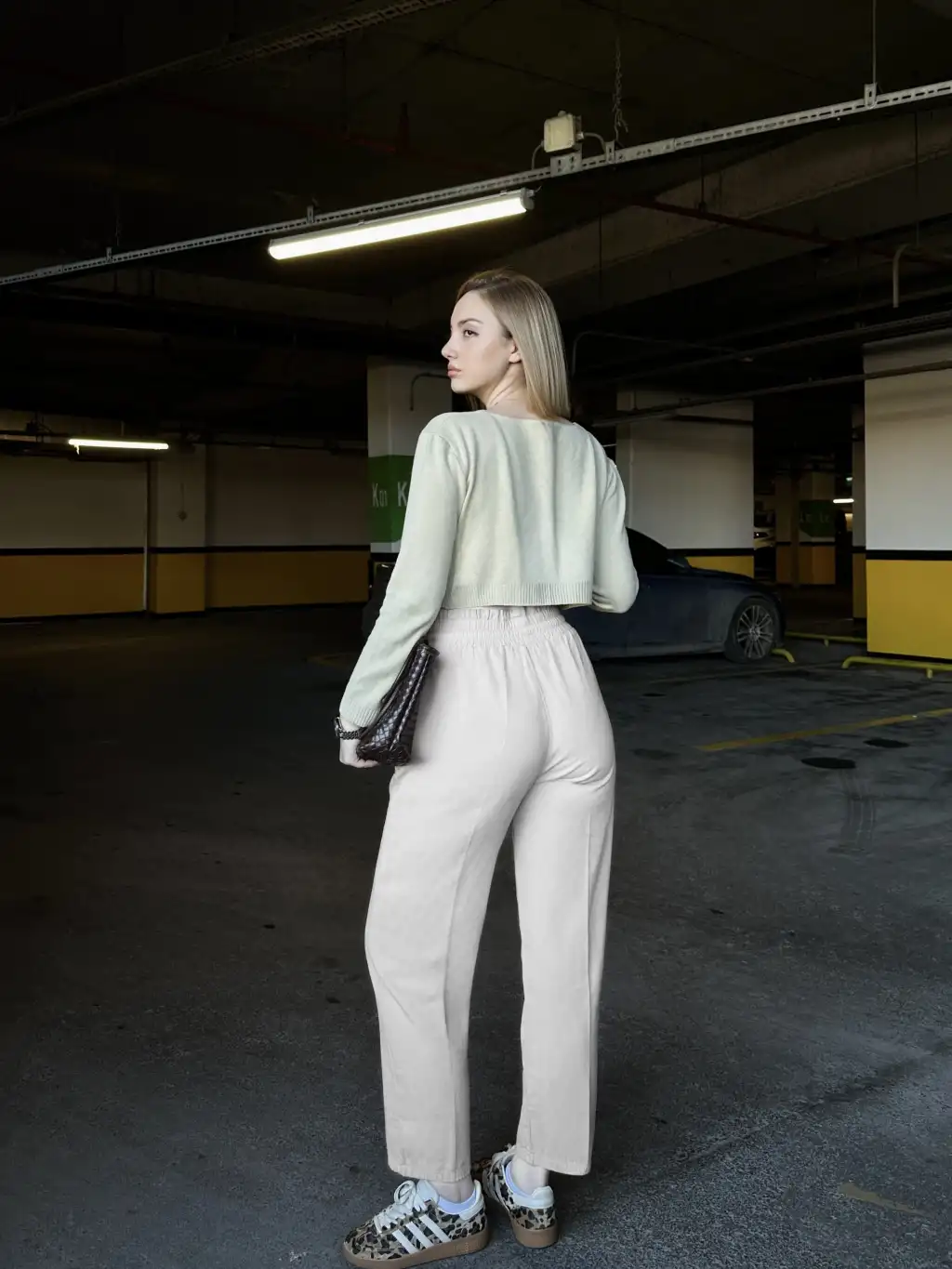 Yüksek Bel Gabardin Cepli Taş Pantolon