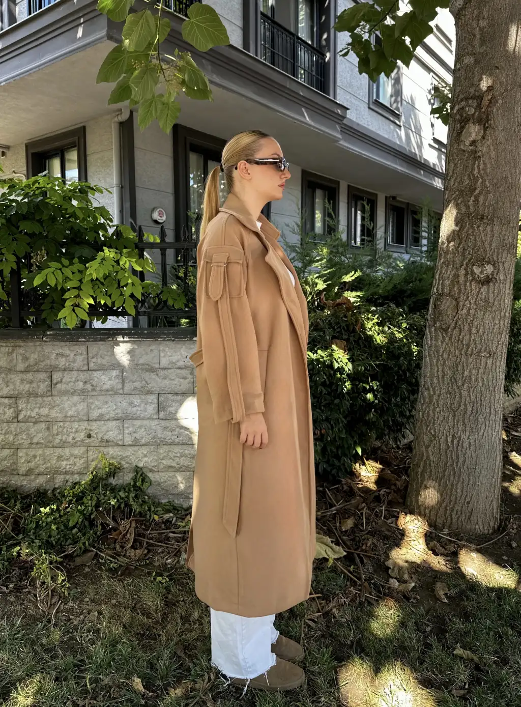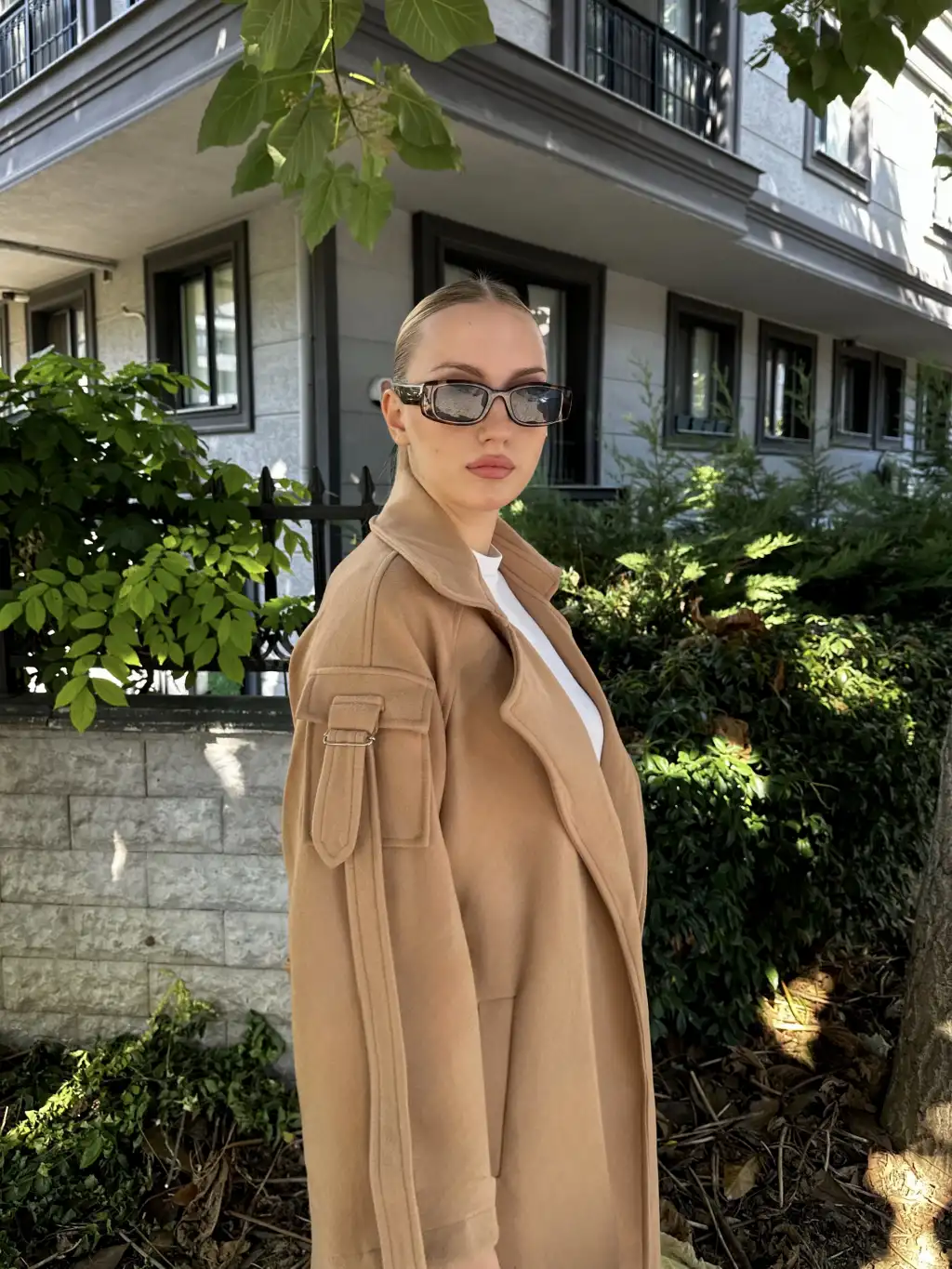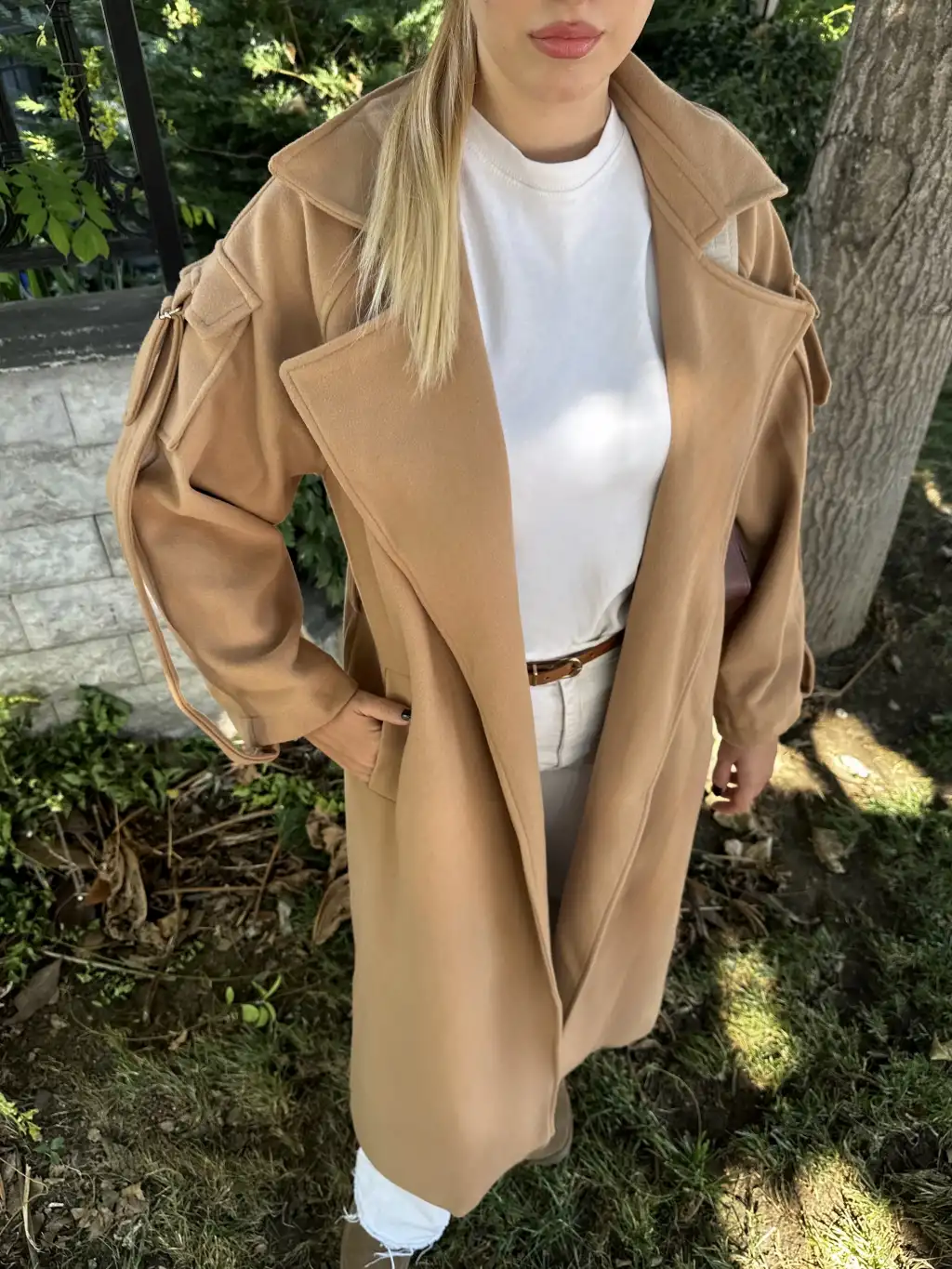 Zeze Taba Apolet Detay Kuşaklı Premium Kaşe Kaban