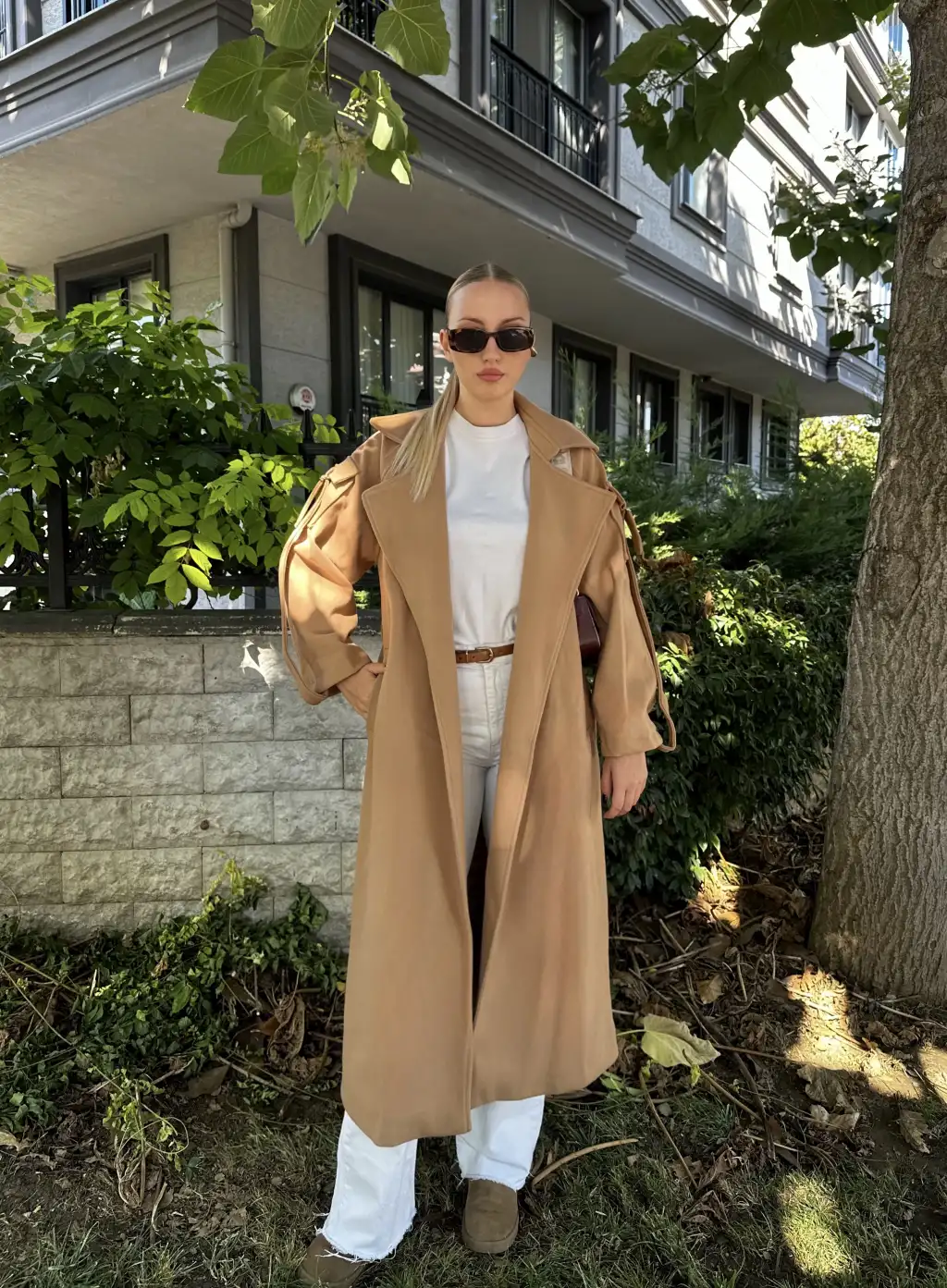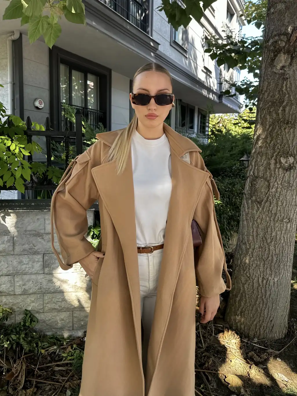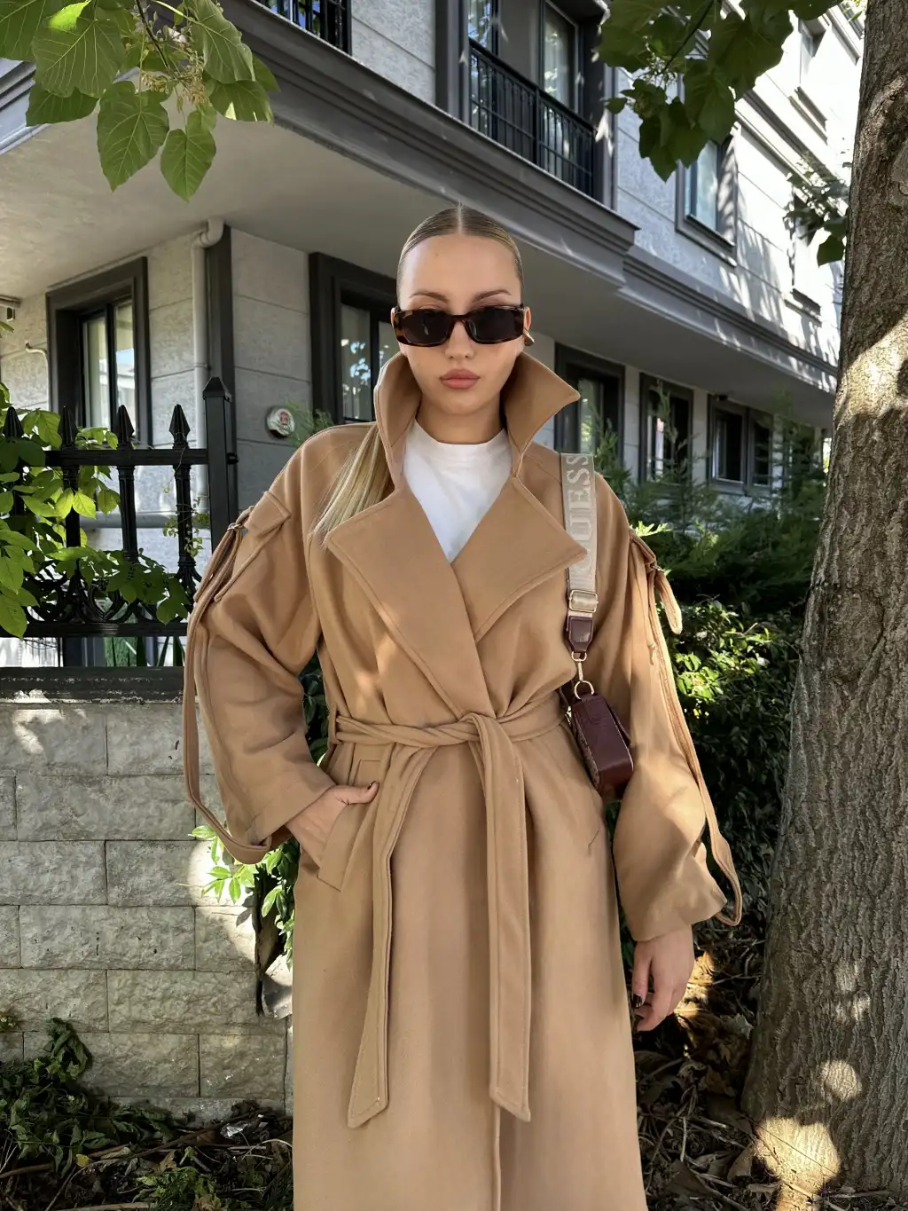 Zeze Taba Apolet Detay Kuşaklı Premium Kaşe Kaban