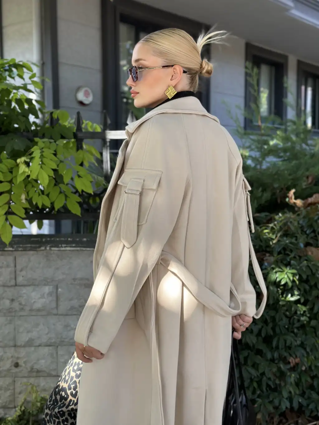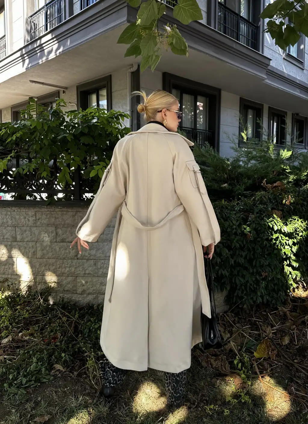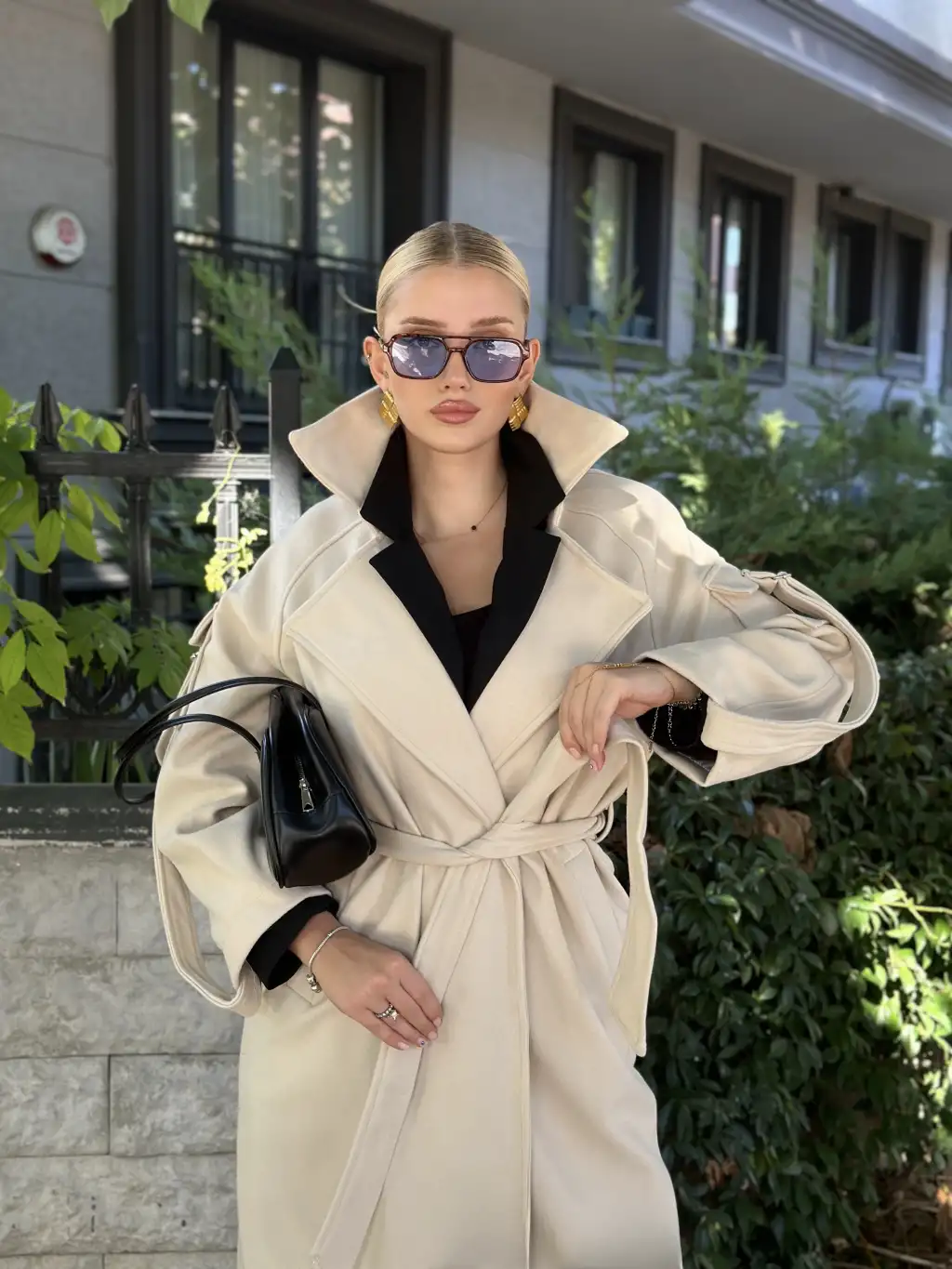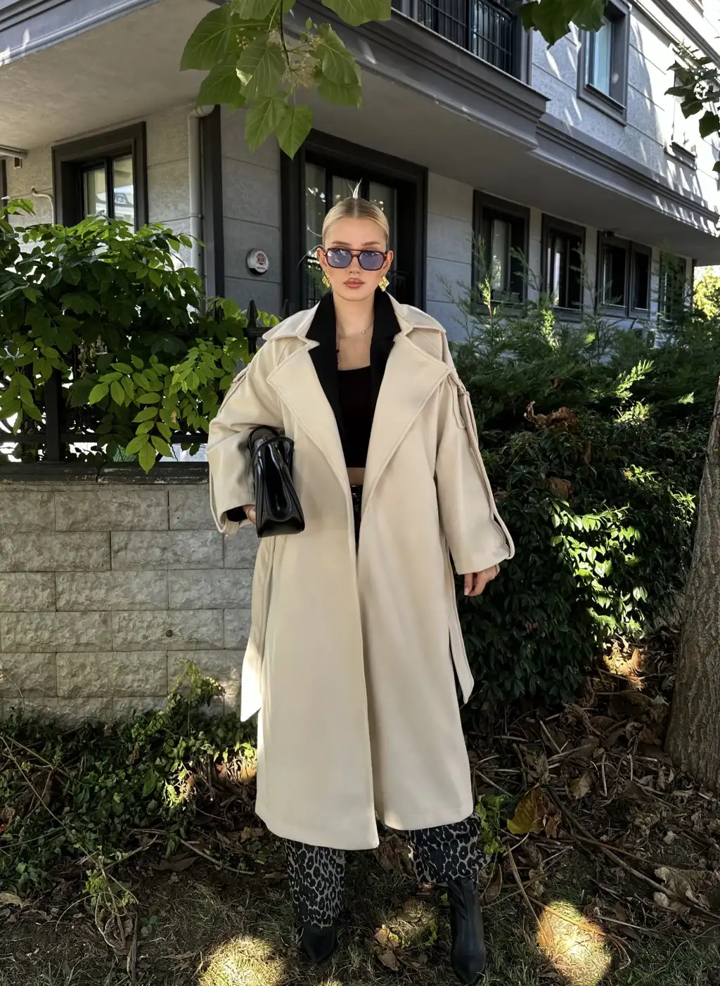 Zeze Bej Apolet Detay Kuşaklı Premium Kaşe Kaban